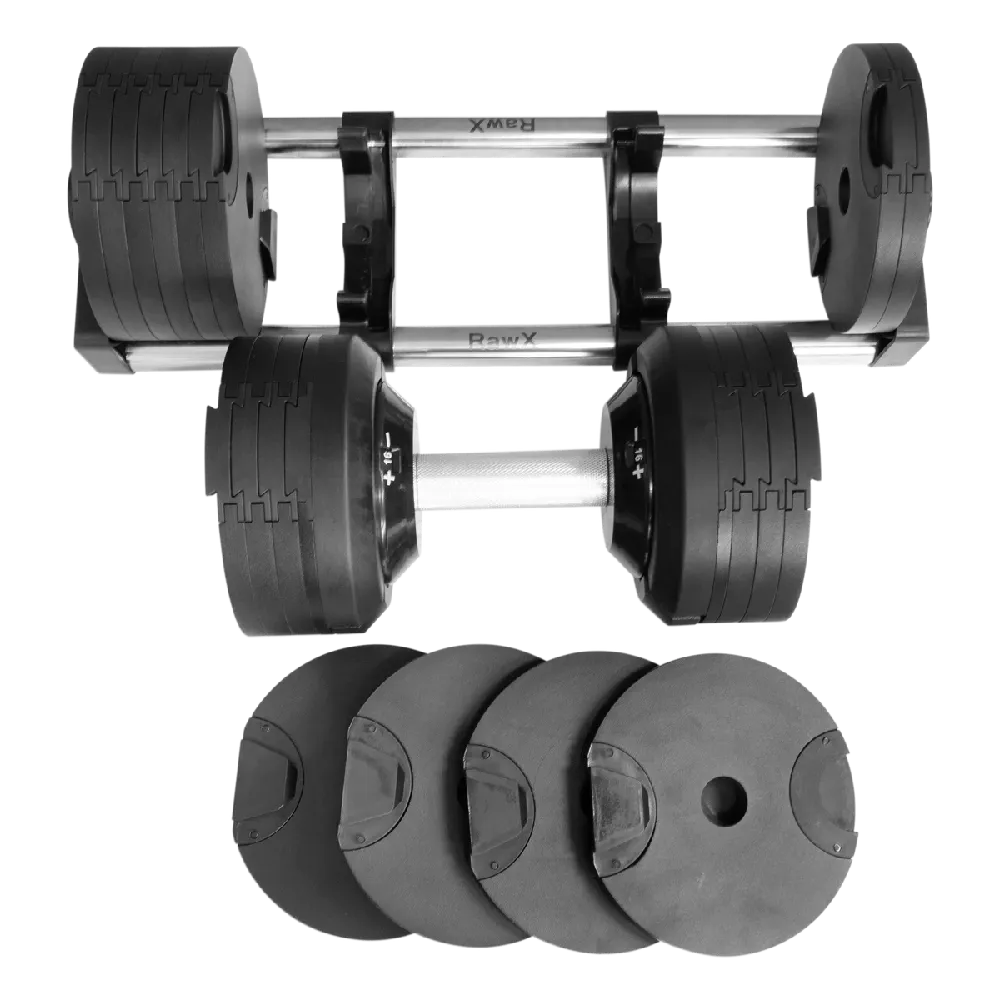 Her er design, kvalitet og brugervenlighed i stærke håndvægte, der nemt indstilles i 20 intervaller: 2 - 4 - 6 - 8 - 10 - 12 - 14 - 16 - 18 - 20 - 22 - 24 - 26 - 28 - 30 - 32 - 34 - 36 - 38 -40 kg. Drej håndtaget og vægten skifter nemt og hurtigt. Håndtagene roterer jævnt og falder tydeligt i hak ved de indstillede intervaller. Du har optimal balance i disse håndvægte, da vægten altid er centreret tæt omkring håndtaget uden mellemrum. Ved vægtøgning tilføjes skiverne kontinuerligt til teleskopstangen uden de store mellemrum, som ses på andre typer af justerbare håndvægte.